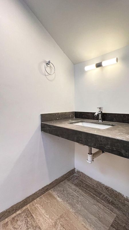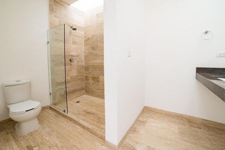 Recámara principal con espacio de closet, baño completo con doble lavamanos, balcón y vestidor