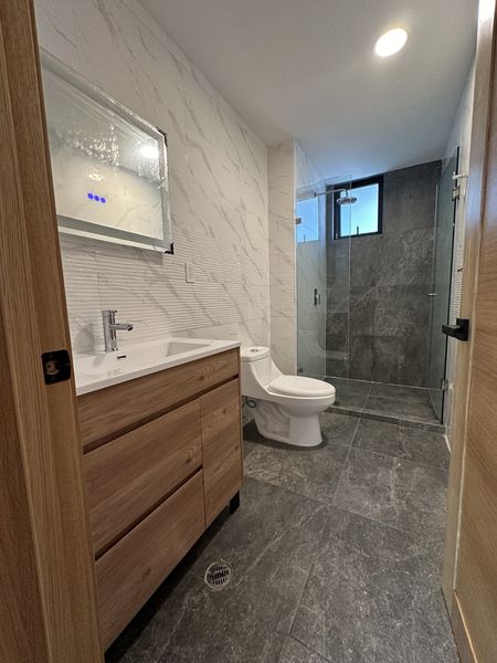 Depto 202.Interior muy iluminado. habitación principal con closet, baño completo y balcón , segunda recámara con closet, cocina integral con barra, sala-comedor con balcón al frente, área de lavado con ventilación natural,bodega.