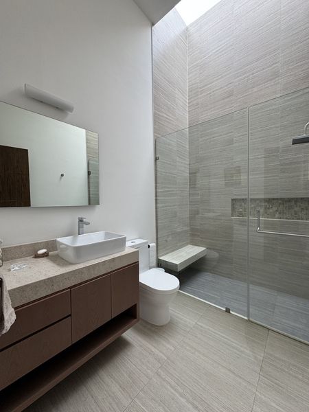 Cuenta con tres recámaras cada una con su baño y la principal con vestidor, sala, comedor, family, terraza con asador y amplios jardines.