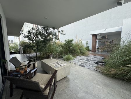 Tiene cuatro lugares de estacionamiento, áreas de servicio y bodega.
