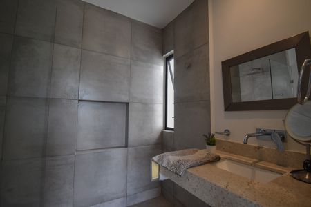 - Recámara principal: cama, mesas de noche, silla doble para balcón, closet vestidor con 4 closets movibles, lavabo doble con espejo, baño con cancel y accesorios.