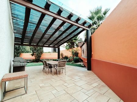 Casa 4 recamaras, principal con vestidor y baño, 3 recamaras con baño completo, sala-comedor, cocina equipada, barra desayunador, sala de T.V. área de lavado, cuarto de servicio, jardín 300m mts, estacionamiento 4 autos.