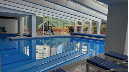 Amenidades: alberca techada, jacuzzi, gimnasio, salón de fiestas, terraza común con palapa y asador y cancha de usos múltiples.