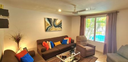 ︎ Sala de TV / Estudio ó 4a Recámara con vista al jardín y a la piscina.