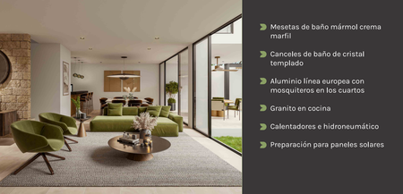 Mesetas de marmol, canceles de cristal templado, aluminio linea europea, mosquiteros, granito en la cocina, calentador e hidroneumatico.