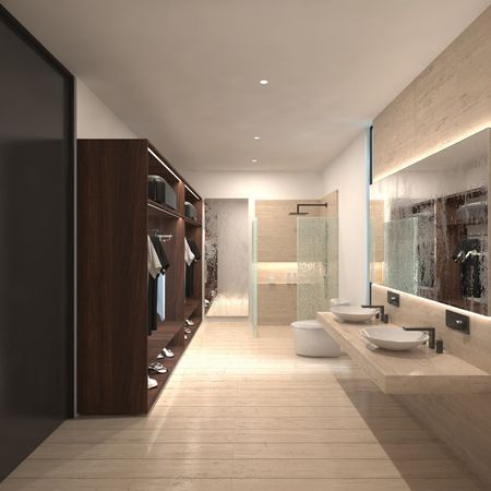 - Recámara principal con closet-vestidor y baño completo con doble lavabo.