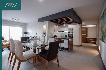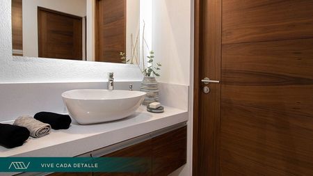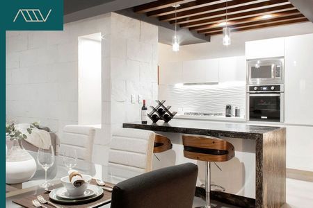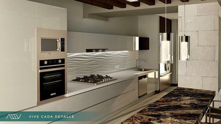 Cuenta con acabados de lujo, puertas de chapa de nogal, cocina equipada, desayunador de granito , iluminación natural y detalles de alta gama , excelente calidad constructiva.