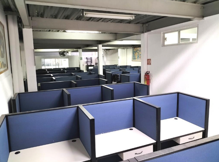 1er nivel: Call Center, área de recepción con mobiliario, 2 sillas de espera, sala de capacitación para 10 o 12 personas con sillas, escritorio y pizarrón blanco, área con 50 espacios tipo lockers individuales, área operativa con más 40 espacios individuales con división y cajonera, área independiente con 5 escritorios individuales, 2 archiveros pequeños y pizarrón blanco, área independiente con 9 escritorios individuales y archiveros grandes de acero. Área abierta con escritorio gerencial, escritorio individual, archivero y 2 sillas gerenciales, espacio con ventilación e iluminación con rack para instalar site, comedor con mesas, mobiliario y balcón. Área de aseo, 2 tinacos, bomba y lavadero.