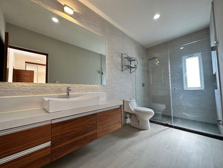 Cuenta con acabados de lujo, puertas de chapa de nogal, cocina equipada, desayunador de granito , iluminación natural y detalles de alta gama , excelente calidad constructiva.