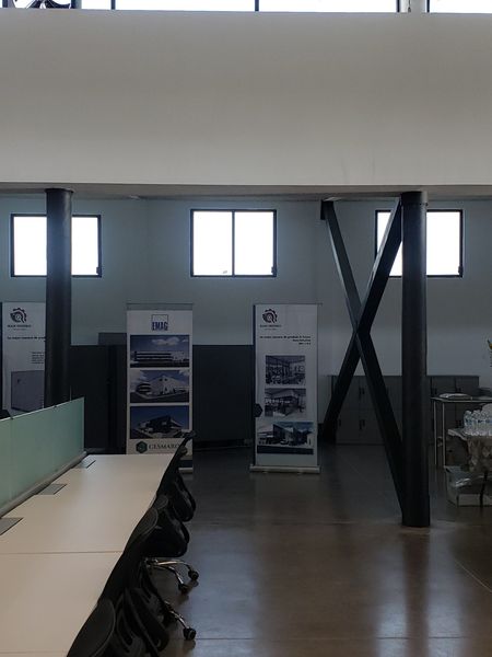 Arquitectura funcional: Pisos industriales con resistencia de 9 ton/m², techumbre con lámina KR18, iluminación LED.