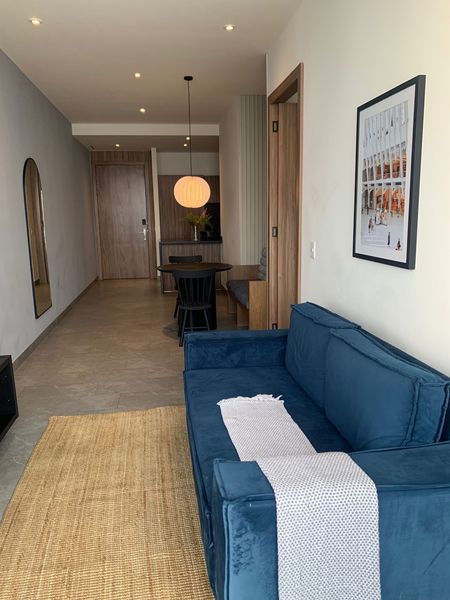 Este elegante departamento. ofrece acabados de alta calidad, mobiliario completo.