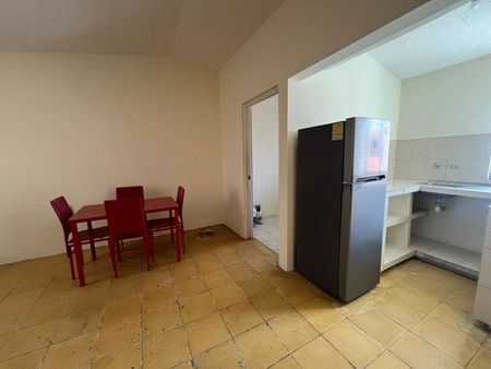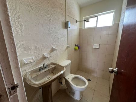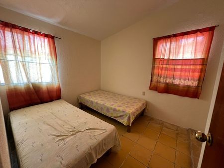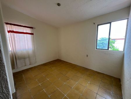 Área de sala-comedor, cocina de material, 2 recámaras con espacio para adecuación de clósets, 1 baño completo y cajón de estacionamiento para 1 vehículo. Equipado con tinaco.