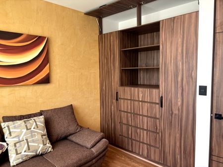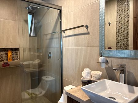 Departamento en 1 er piso con 3 recamaras, principla con vestidor y baño, sala con salida al balcón, comedor, cocina equipada, barra desayunador.
