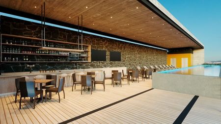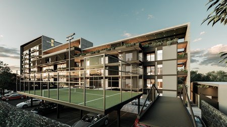 Alberca 3.5 x 5.5 m2 , cancha de padel asoleadero, roof top, bar, games room, gym, kids club, salón de eventos, infinity Pool