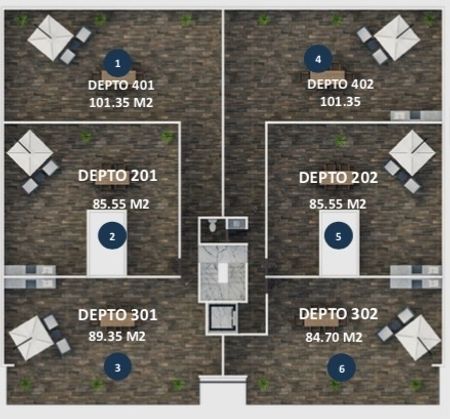 Ambos cuentan con 383 m2 totales distribuidos en: