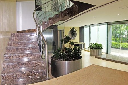 • Imponente recepción a triple altura, con acceso de vidrio templado automático.