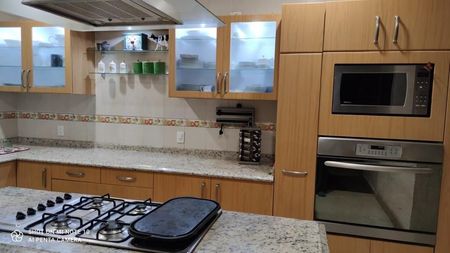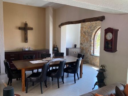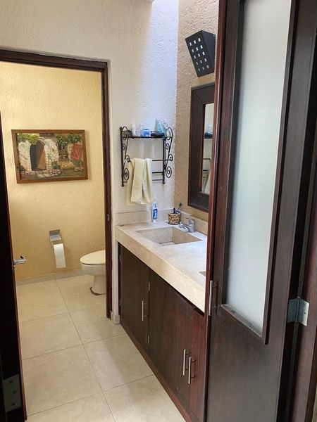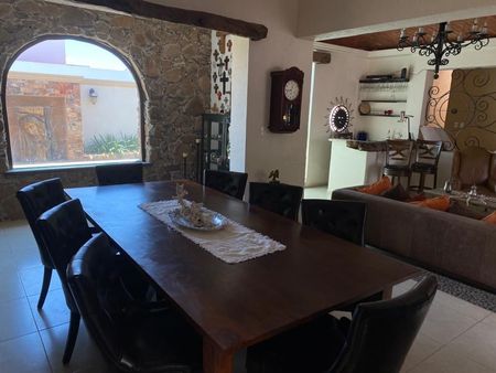 La casa cuenta con alberca, 4 habitaciones, la principal con amplio vestidor y baño con jacuzzi , amplia cocina con desayunador y alacena, amplia estancia con cantina integrada, cuarto de servicio. Área de alberca con salón y terraza con asador y horno de Piedra . Iluminación led, paneles fotovoltaicos y calentador solar , cisterna de 10,000 litros y separación de aguas grises para riego. Cochera cubierta para 3 autos y jardín de 45 metros