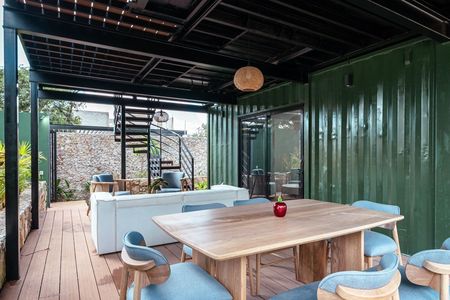 Casas contenedores en Jardín de la Vida, ubicadas en Dzitya; una de las nuevas colonias al norte de Mérida que goza de un gran crecimiento inmobiliario con privadas residenciales, desarrollos y amplios terrenos, garantizando una vida tranquila, rodeada de belleza natural y muy cerca de la capital.