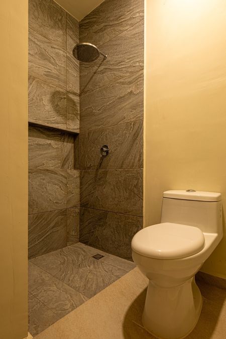 Carpintería en cocina con gavetas inferiores y superiores, meseta de granito, fijo de cristal templado en baños, piso interior de 45 x 90, alberca, parrilla de gas con 5 quemadores. , mesetas de mármol en baños, acabados en muros interiores de yeso, bomba presurizadora.