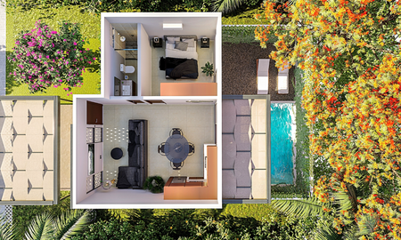Diseño Inteligente. Cada villa ha sido meticulosamente diseñada para aprovechar al máximo el espacio disponible, ofreciendo ambientes cómodos y luminosos que te invitan a sentirte en casa desde el primer momento. Nos encargamos de que la división de espacios sea ideal para hacer de este lugar el hogar de tus sueños.