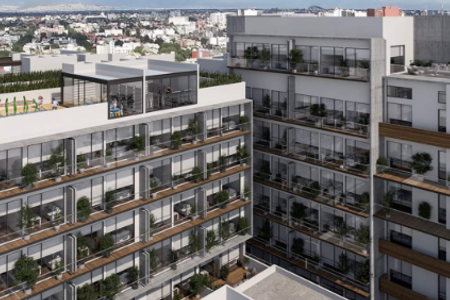 Espacios inspirados en una perspectiva ascendente y abierta, para que experimentes tus días desde otro plano. Bajo un trazo arquitectónico que privilegia las vistas, la iluminación y la ventilación, generando una relación con el horizonte y el entorno urbano.