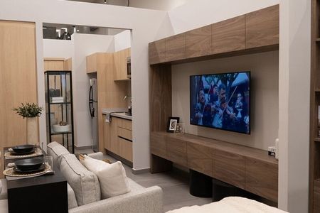 En VIU, cada hogar cuenta una historia a través de sus materiales y acabados. Las paredes revestidas con chukum —un estuco natural del Yucatán— se combinan con pisos de concreto pulido y detalles en madera de alta calidad, creando ambientes cálidos, acogedores y sofisticados. Las amplias ventanas permiten la entrada de luz suave y revelan vistas serenas de las montañas, logrando que cada espacio interior se sienta en armonía con el exterior.